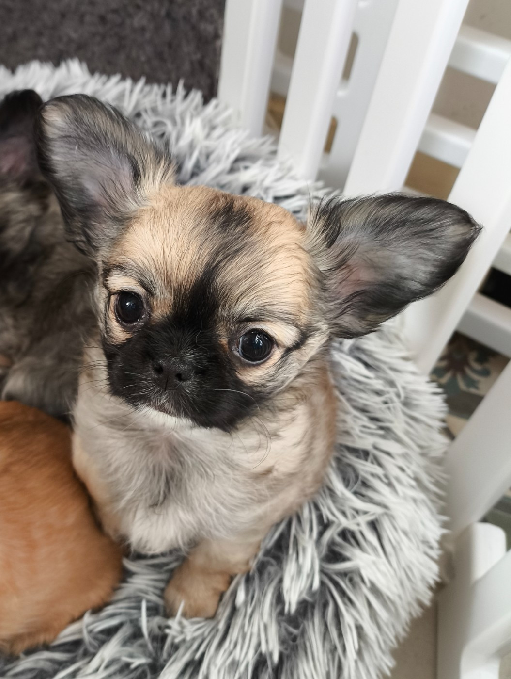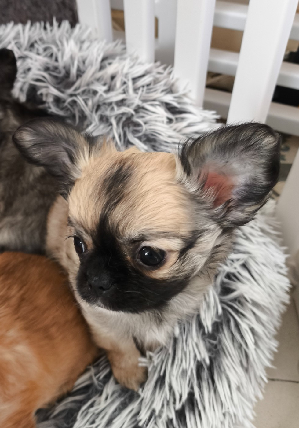 Très beau type pour cette petite boule d'amour joyeuse et qui aime faire des bisous. Abby est la plus petite de la portée, elle est très calme et très proche de l'homme. fauve charbonné clair aux yeux foncés, les dents sont en 6*6.